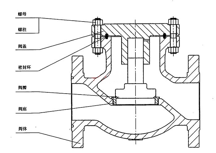 進口升降式止回閥的典型結構如下圖所示